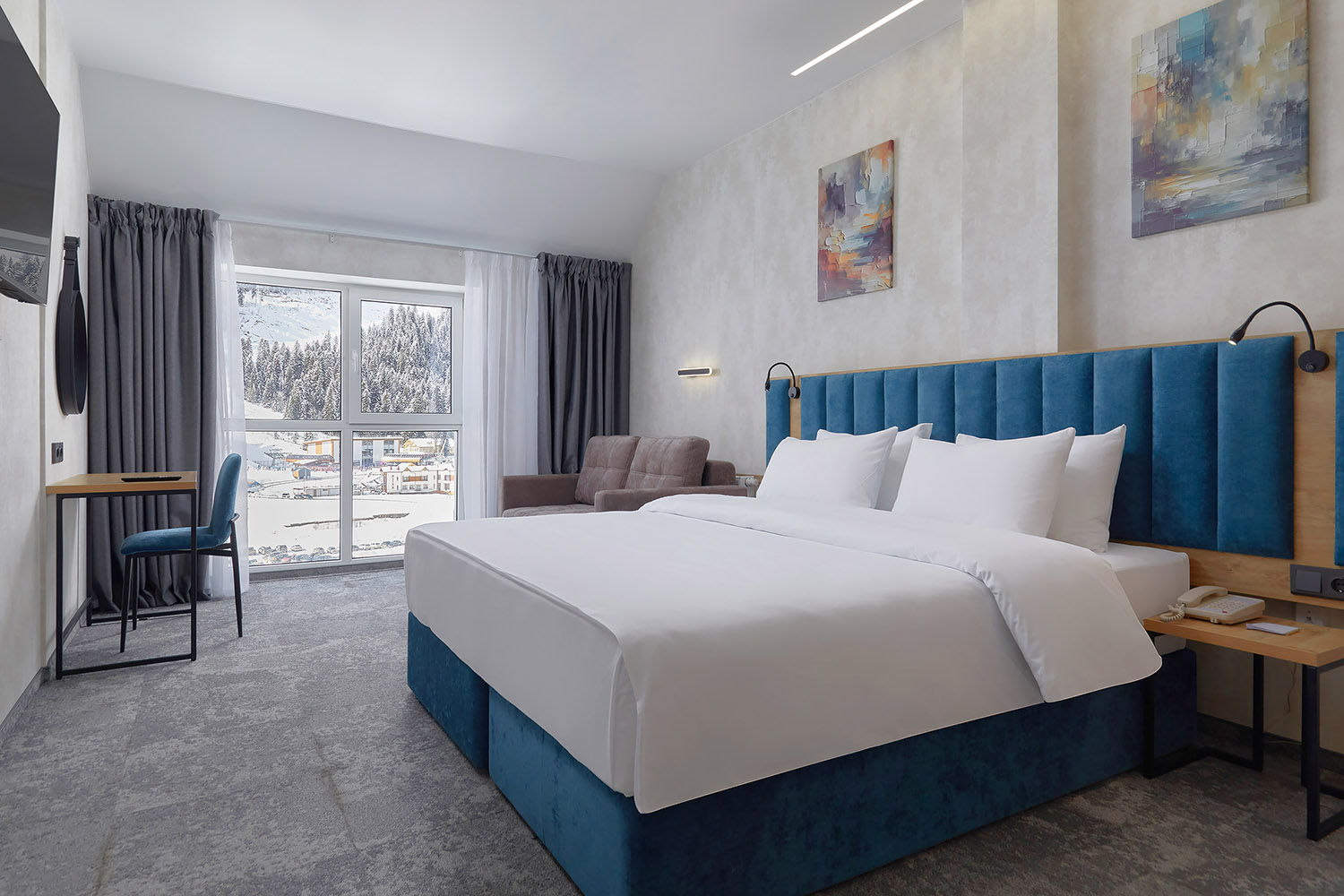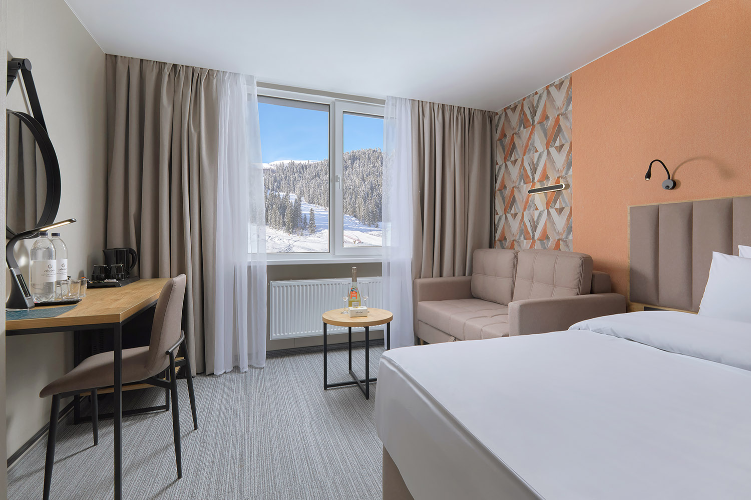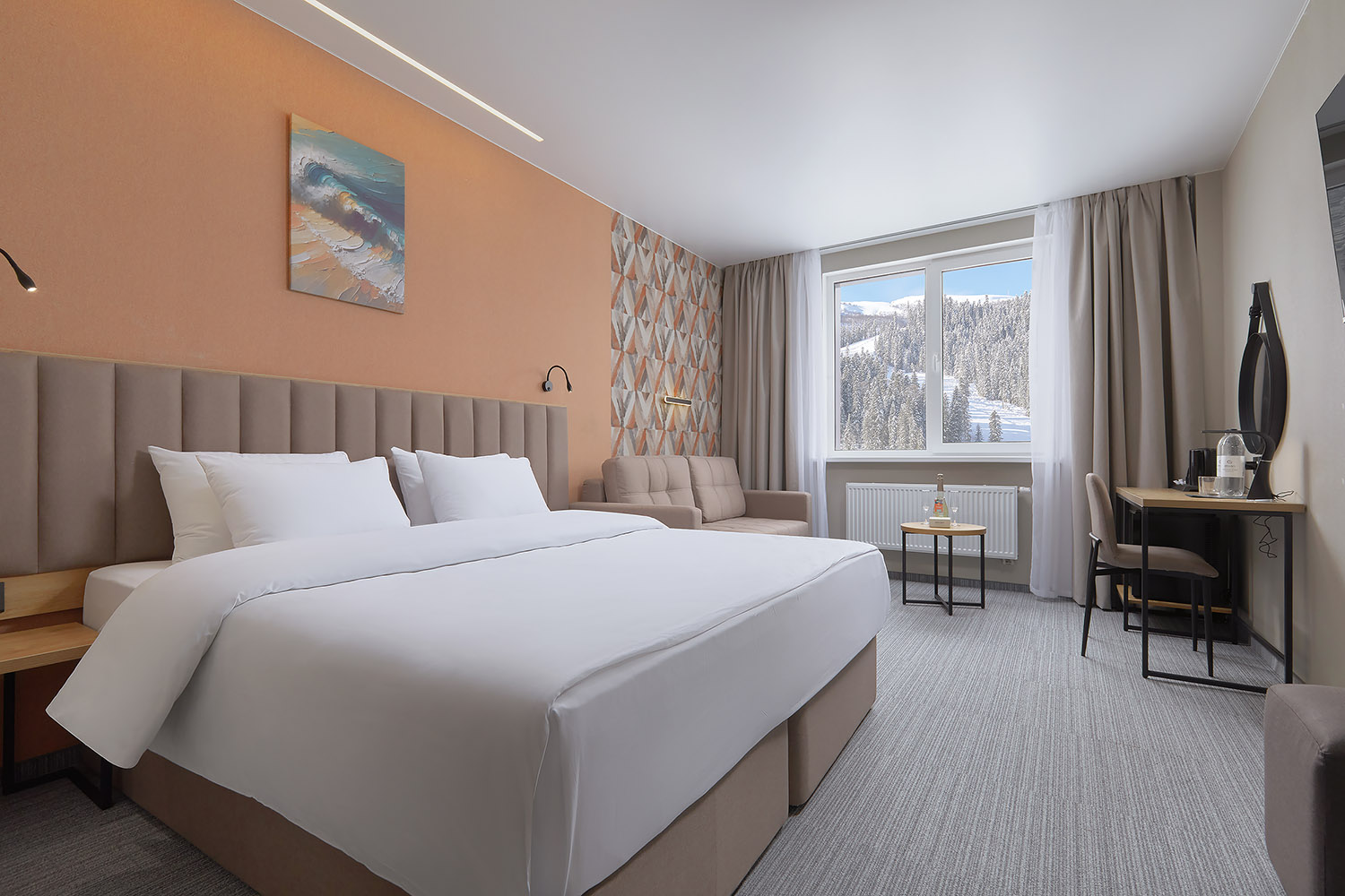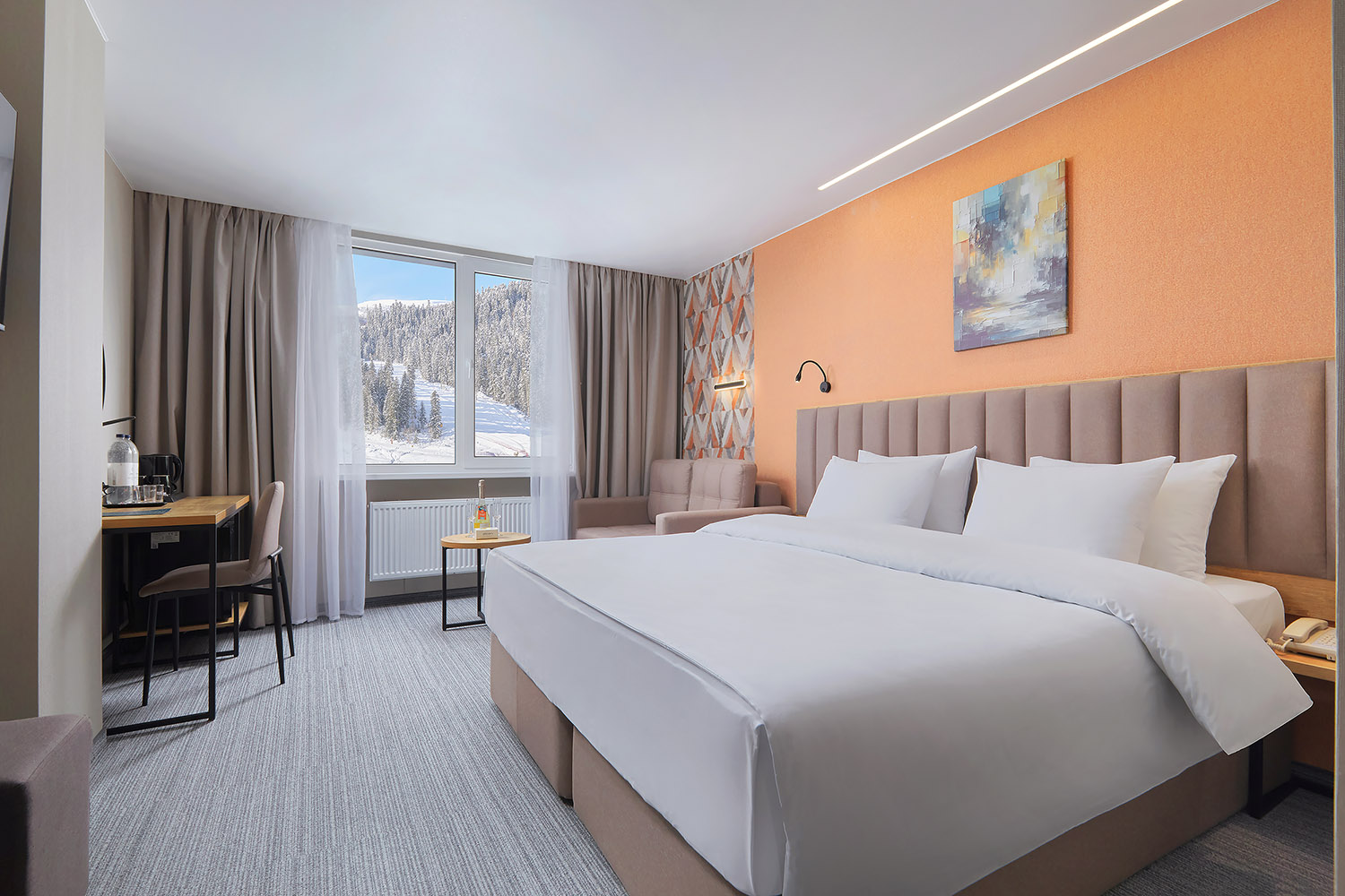 - Room Service: короткое меню блюд и закусок