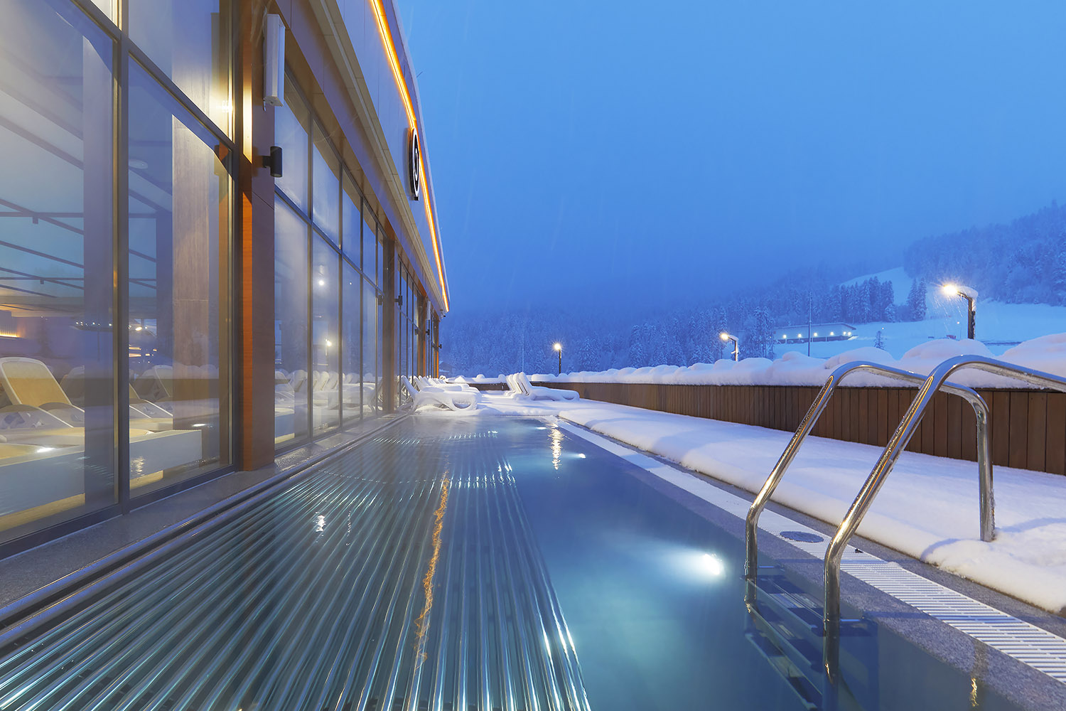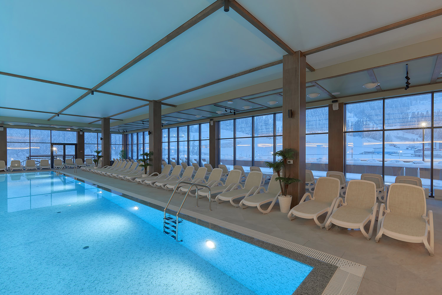 Обрести покой и восстановить внутреннее равновесие гостям поможет посещение акватермального комплекса с хаммамом, финской и арома-сауной. Круглый год на курорте доступны крытые подогреваемые взрослый и детский бассейны, а также открытая чаша джакузи с видом на горы. В фито-баре гостям предлагают травяной витаминный чай и детокс-напиток.