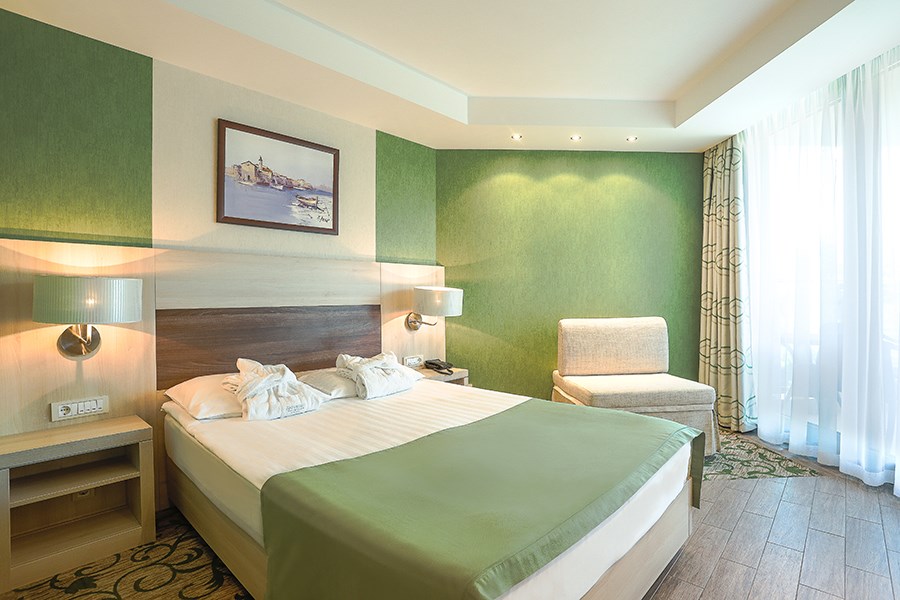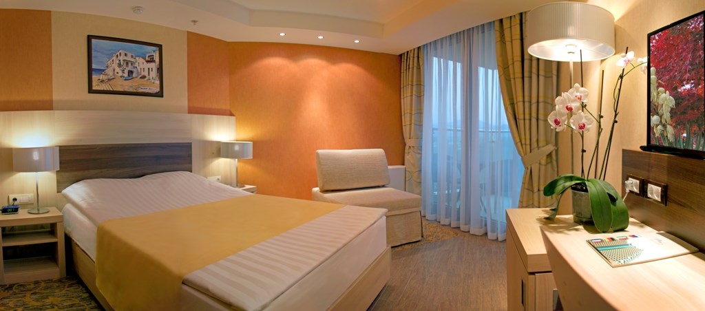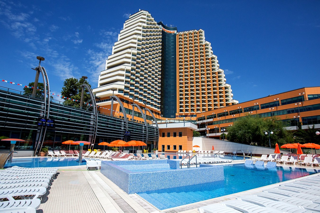 Гостям доступны крытые и открытые бассейны, великолепный банный комплекс, современный фитнес-центр, тренажёрные залы, а также разнообразные спортивные площадки для игры в теннис, волейбол или баскетбол. Для удобства предусмотрены две бесплатные парковки, панорамный лифт, спускающийся к морю, и бесплатный трансфер на пляж.Для ценителей развлечений работают ночной клуб, концертный зал, кинозал, бильярд и боулинг. Организуются экскурсии и конные прогулки. Особое внимание уделяется самым юным гостям: для них созданы игровые комнаты, бассейны, анимационные программы и предлагаются услуги профессиональных воспитателей.