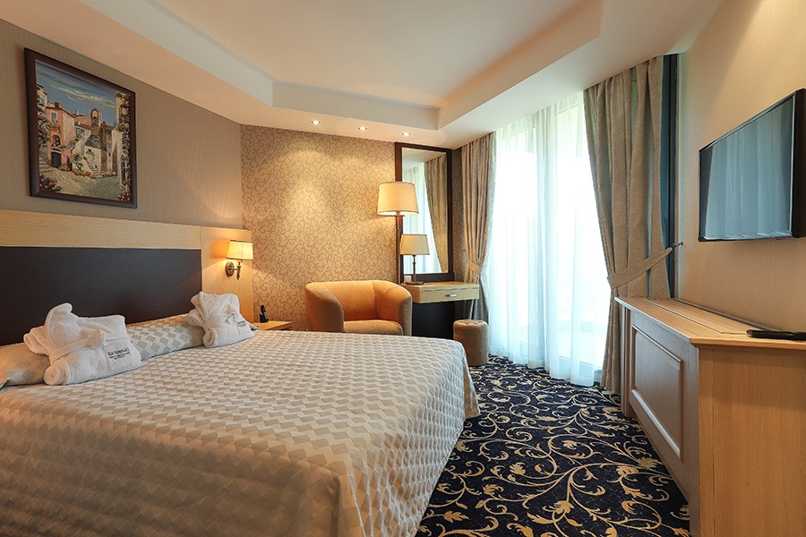 Гостей размещают в двух корпусах: основном 27-этажном здании категории 4 звезды и элитном пятизвёздочном корпусе «Меркурий». Номера отличаются изысканным дизайном и оснащены всей необходимой высококачественной техникой, включая доступ в интернет.