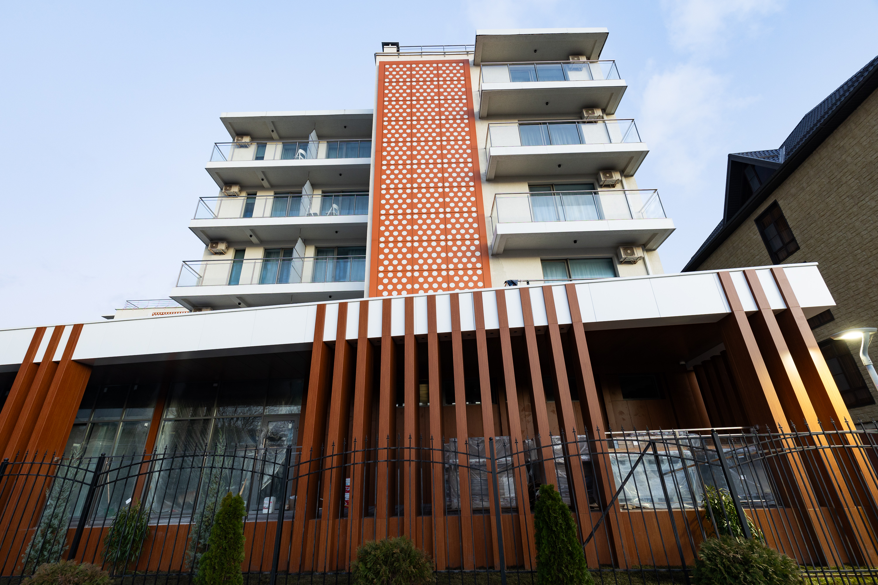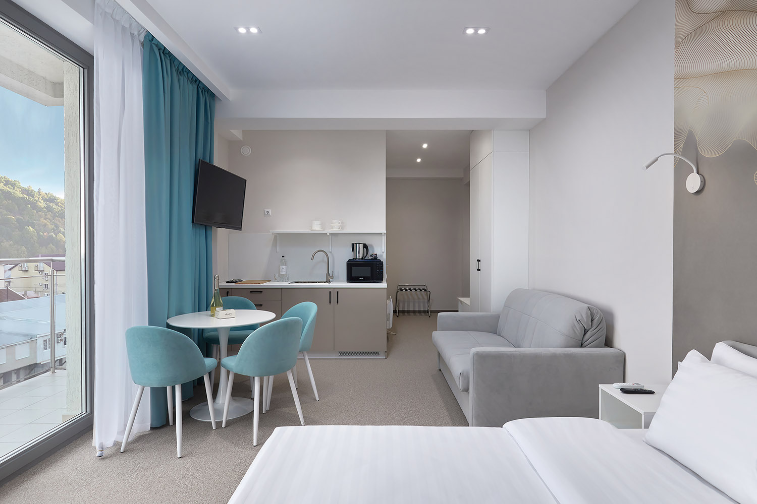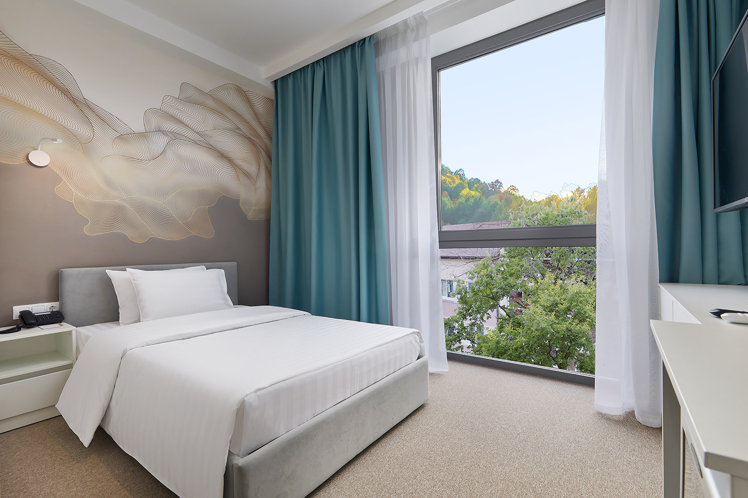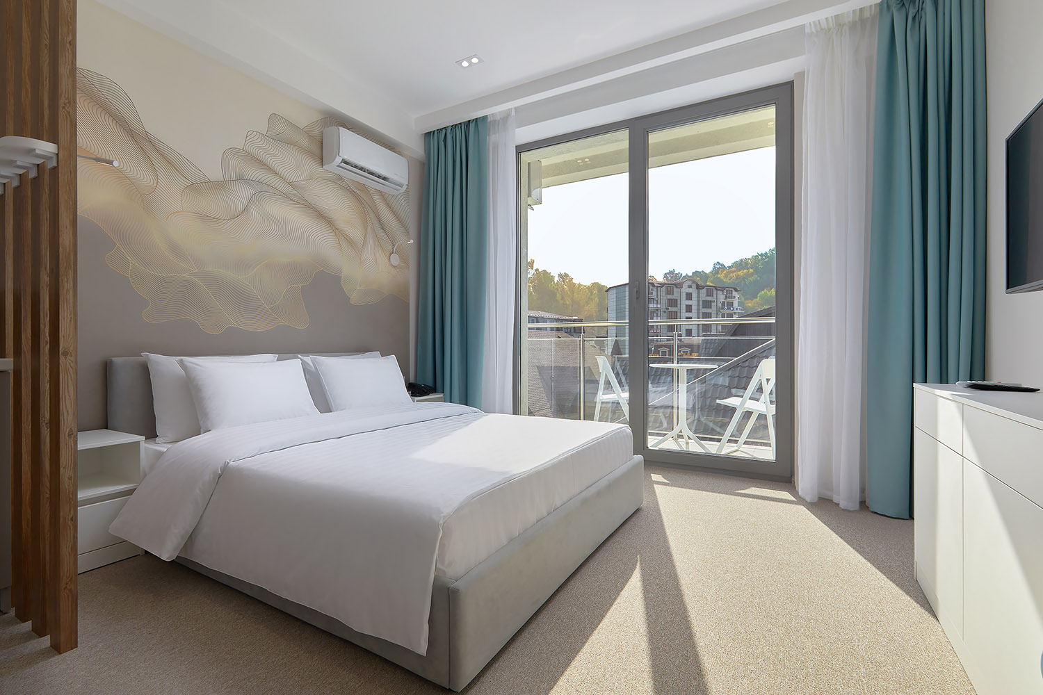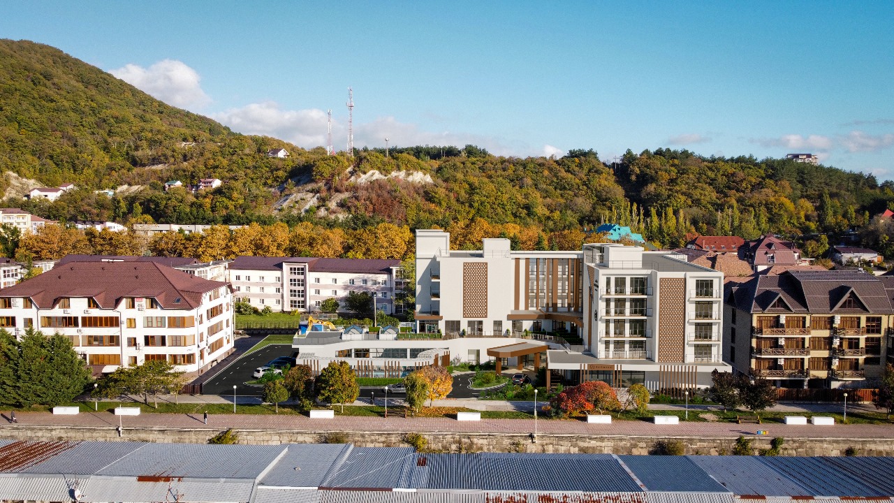 Комфортабельный 5-этажный жилой корпус состоит из 117 номеров разной вместимости — от однокомнатных до апартаментов (55 м2). Во всех номерах есть мини-холодильник, чайная станция, ЖК-телевизор, сплит-система, сейф для особо ценных вещей, фен, гладильная доска и утюг. Большинство номеров оборудованы балконами, что позволяет гостям наслаждаться местными живописными ландшафтами и целебным воздухом.