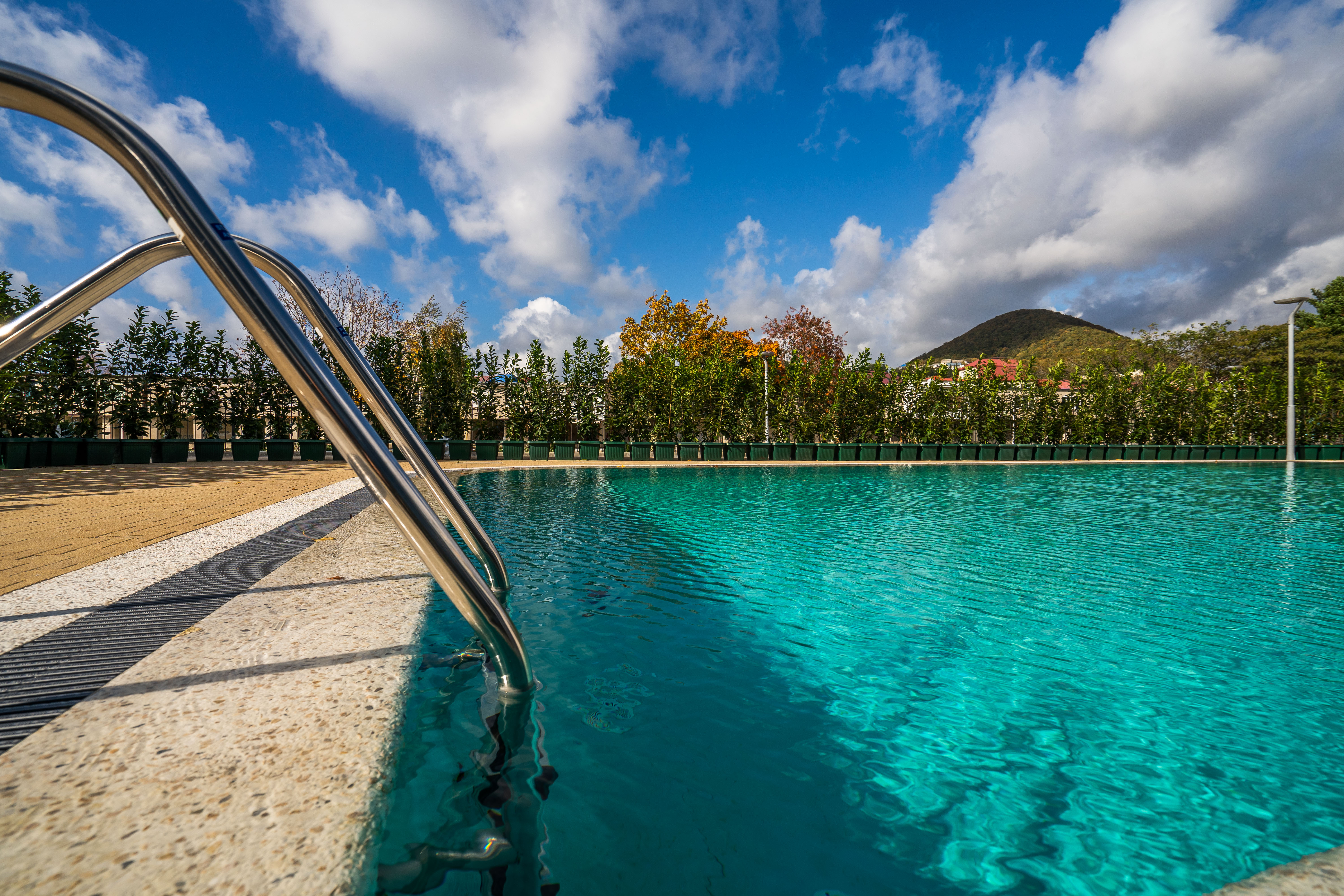 Собственный мелкогалечный пляж отеля с кристально-чистой лазурной водой и пологим дном порадует любителей пляжного отдыха. Для безопасности и комфорта имеются лежаки, навесы, раздевалки и пост спасателей.