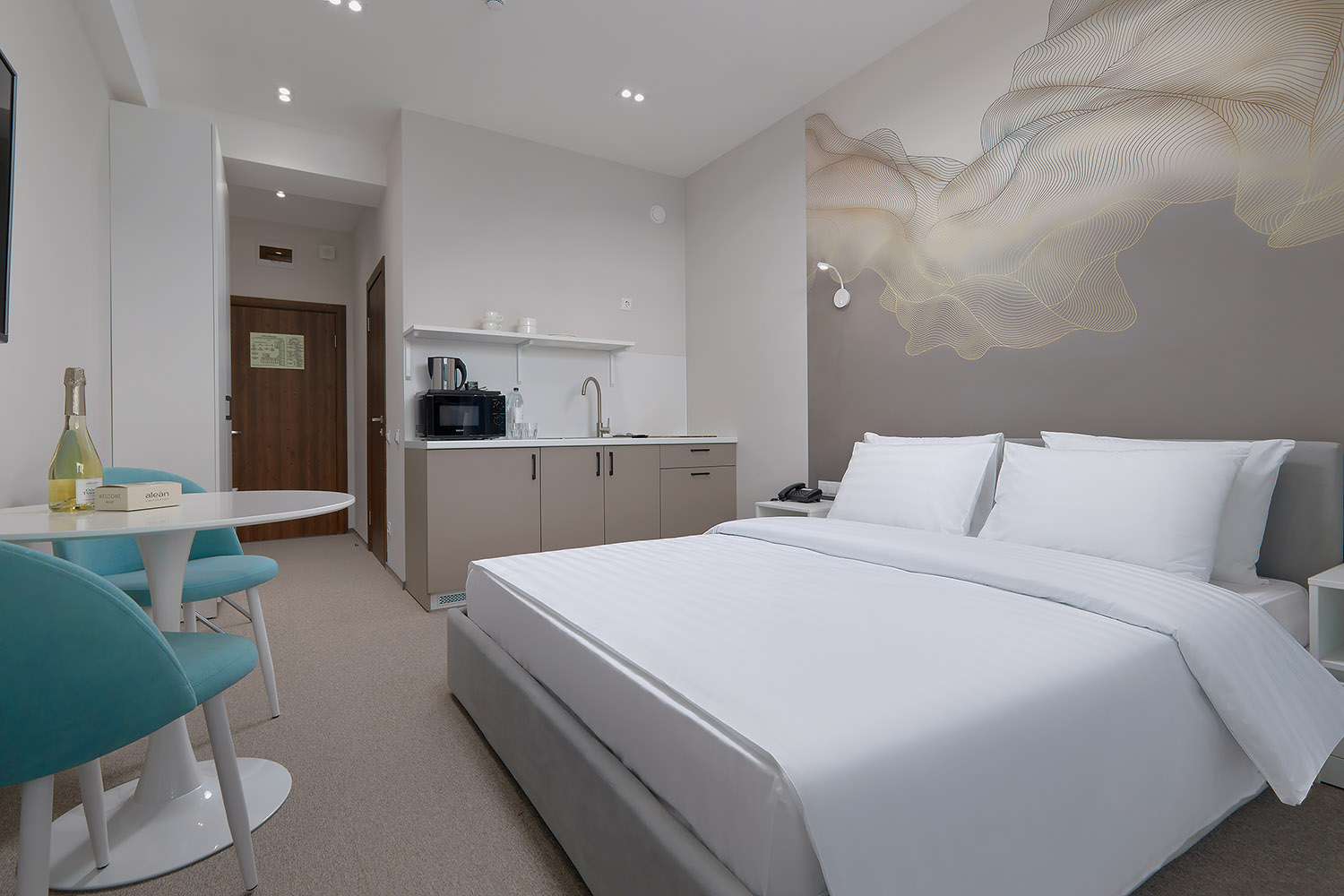 В стоимость проживания в отеле «Alean Select Olginka» входит: сытный завтрак, посещение аква-термального комплекса, пляжа, детской комнаты, тренажерного зала, Wi-Fi.