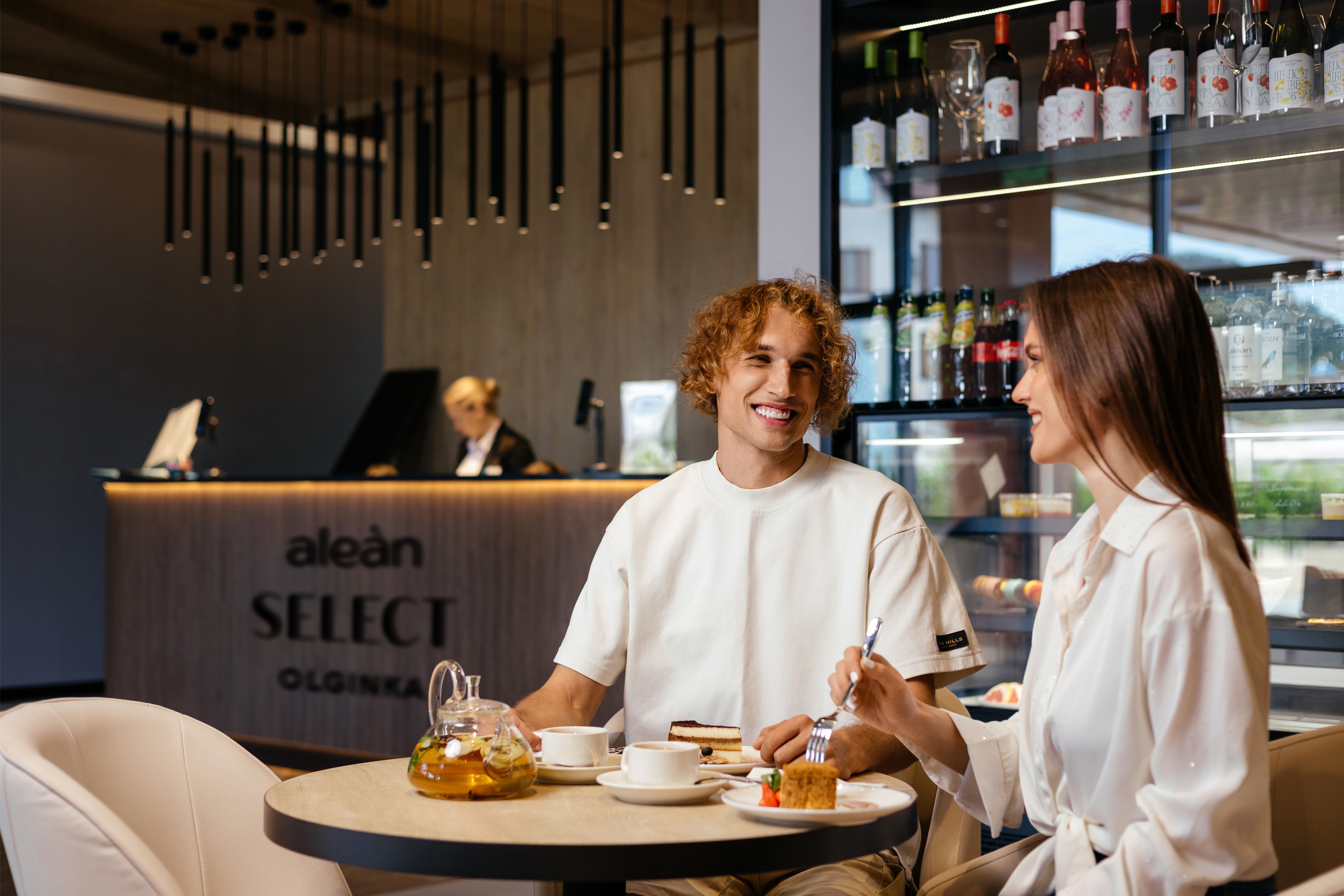 Утром для гостей сервируют вкусный и сытный завтрак. В лобби-баре в течение дня за дополнительную плату доступны алкогольные и безалкогольные напитки, готовые первые и вторые блюда, закуски. В ресторане «Alean Select Olginka» гости могут заказать морепродукты, блюда европейской кухни и позиции из винной карты.